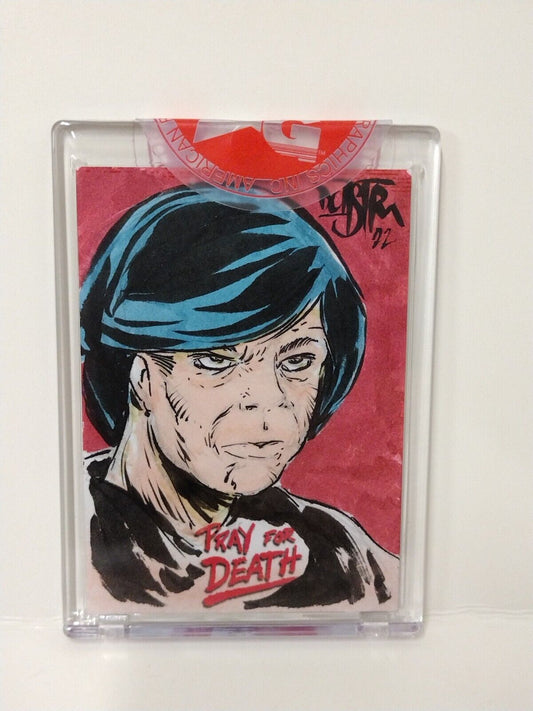 Pray For Death (2022) American Retro Graphics Sketch Card w Original DCastr Art