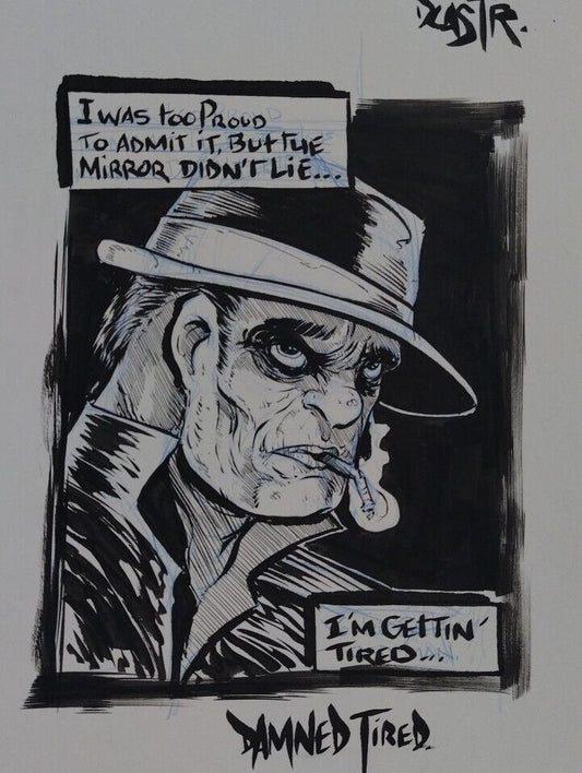 Damed Tired Original Illustration 9x 12" Signed Dave Castr