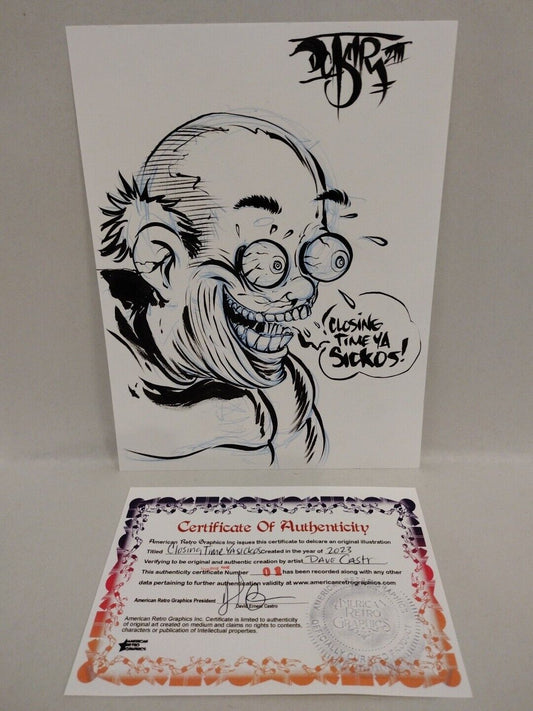 Original Comic Illustration "Closing Time Ya Sickos" Dave Castr W ARG COA