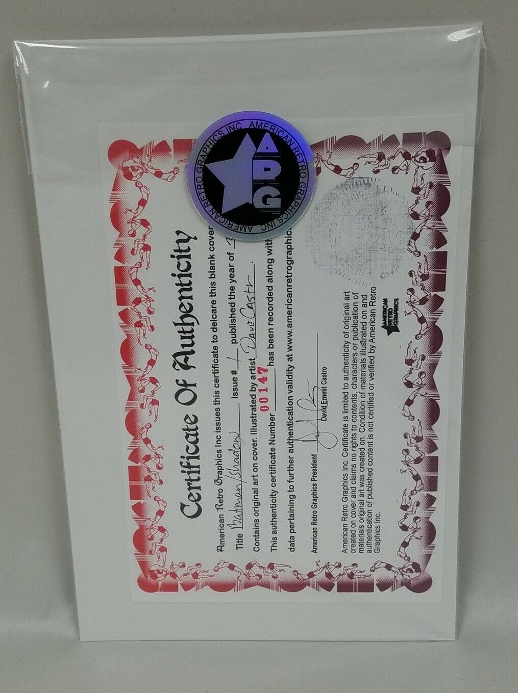 Comic will ship bagged and boarded sealed with ARG logo sticker. Includes certificate of authenticity: Cover and Certificate have been registered in the ARG Database publicly provided on American Retro Graphics website with Identification number 00147.