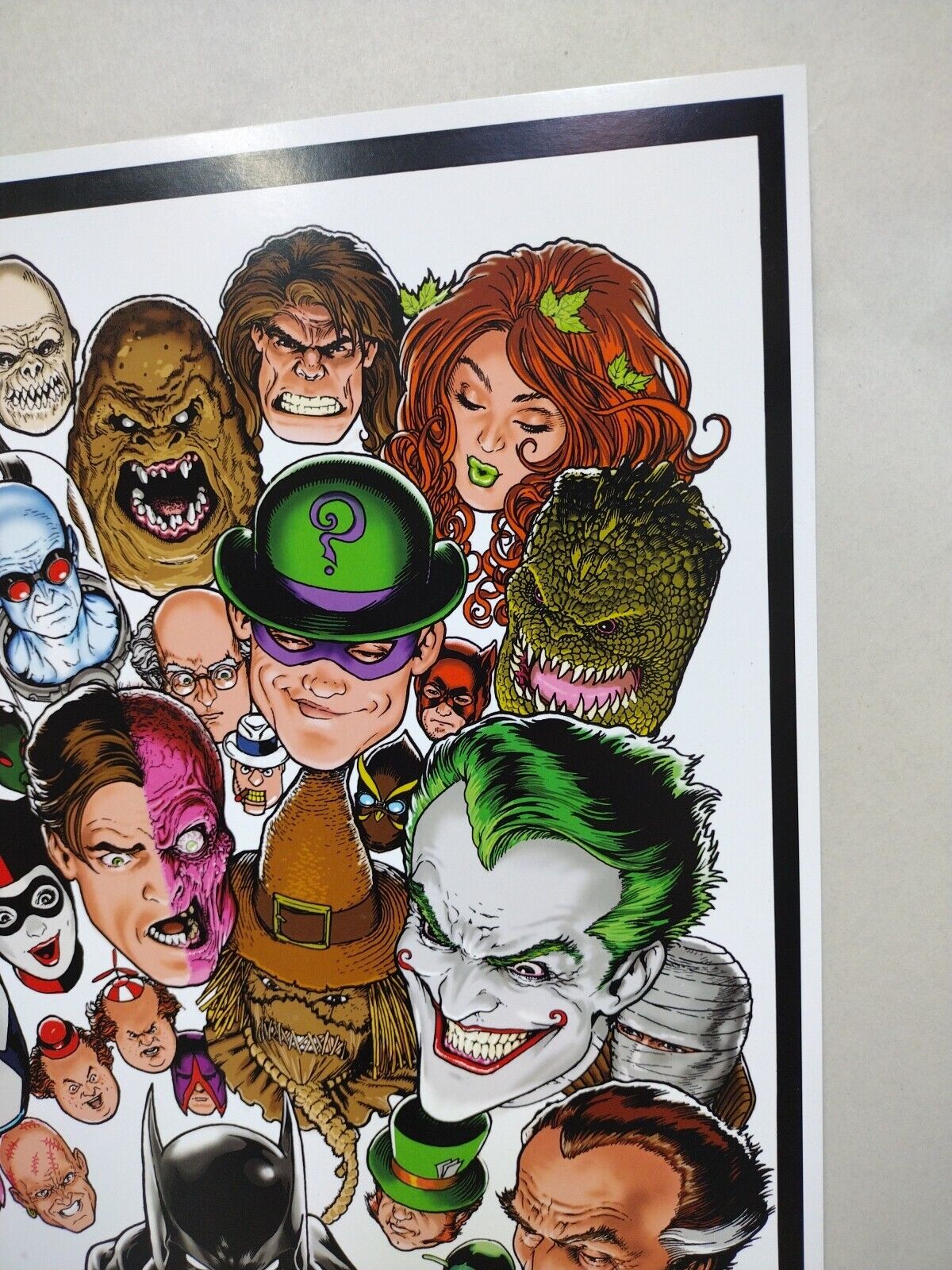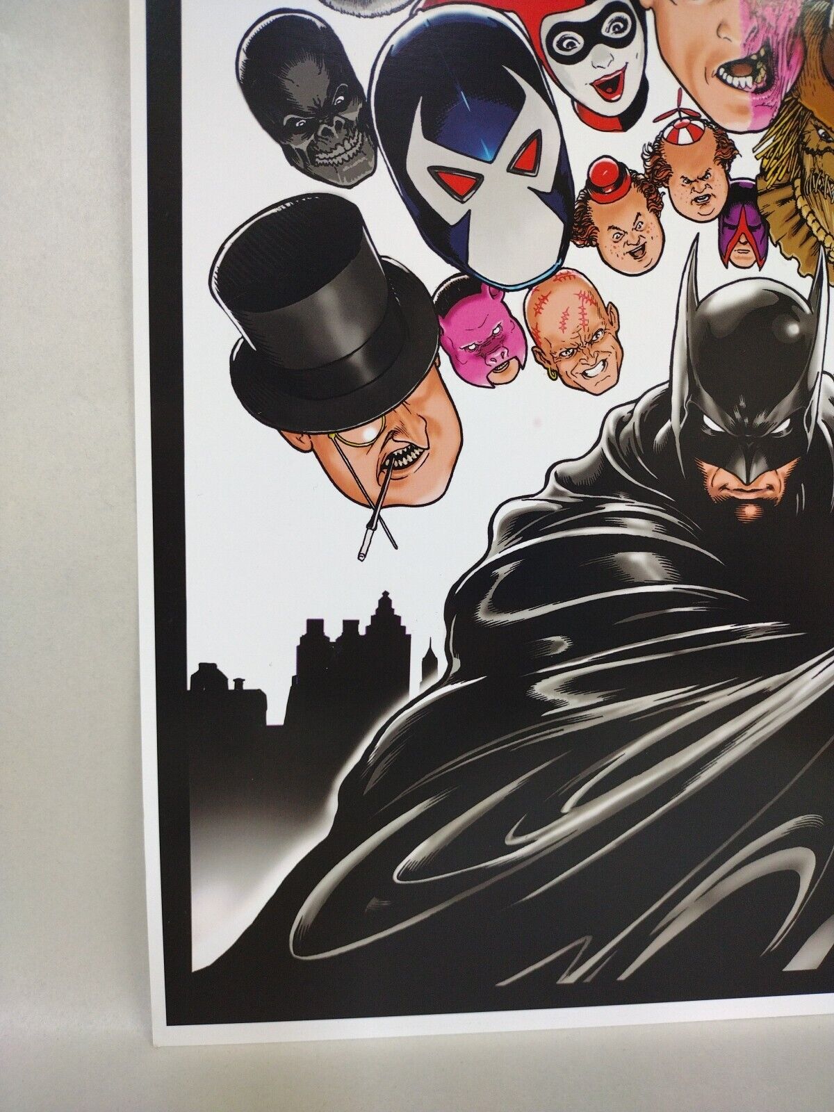 Print measures approximately 18 X 12 inches. Image features artist rendition of Batman and Batman Villains.