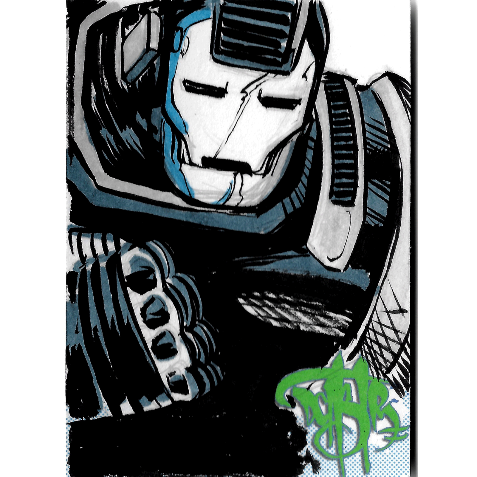 Sale is of 1/1 Original illustration of "War Machine" created with ink, marker and acrylic ink.