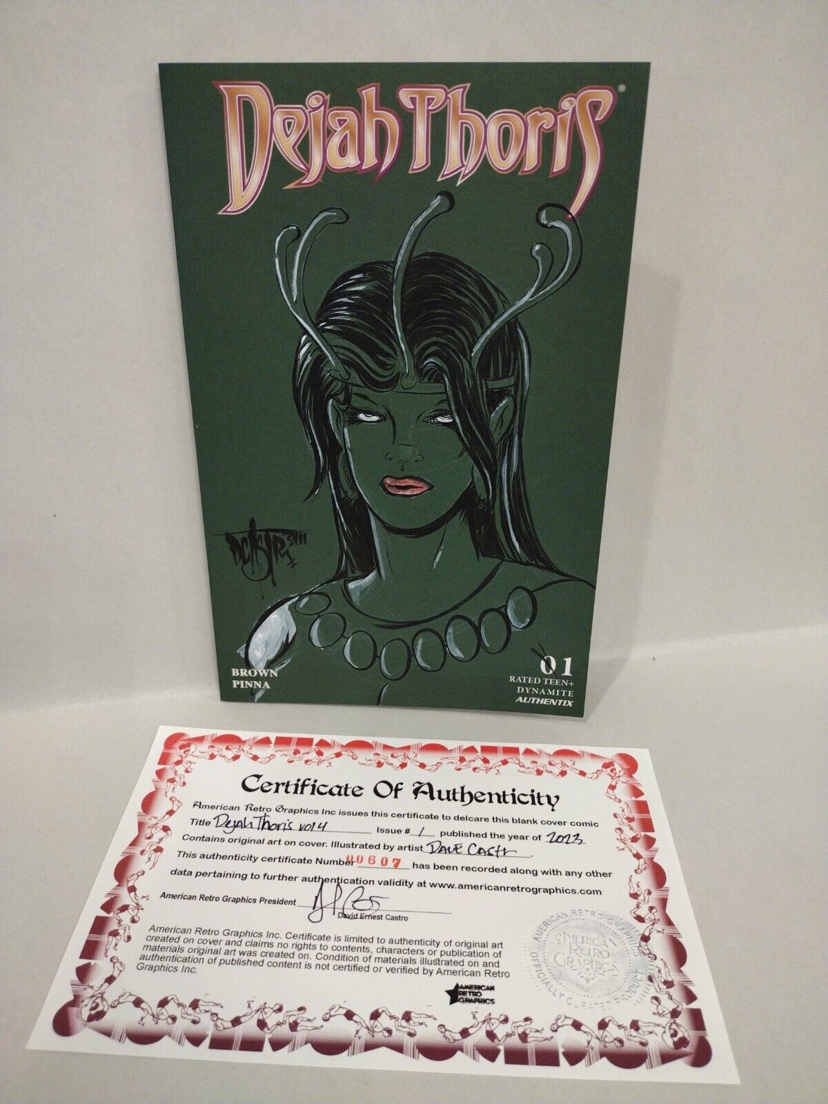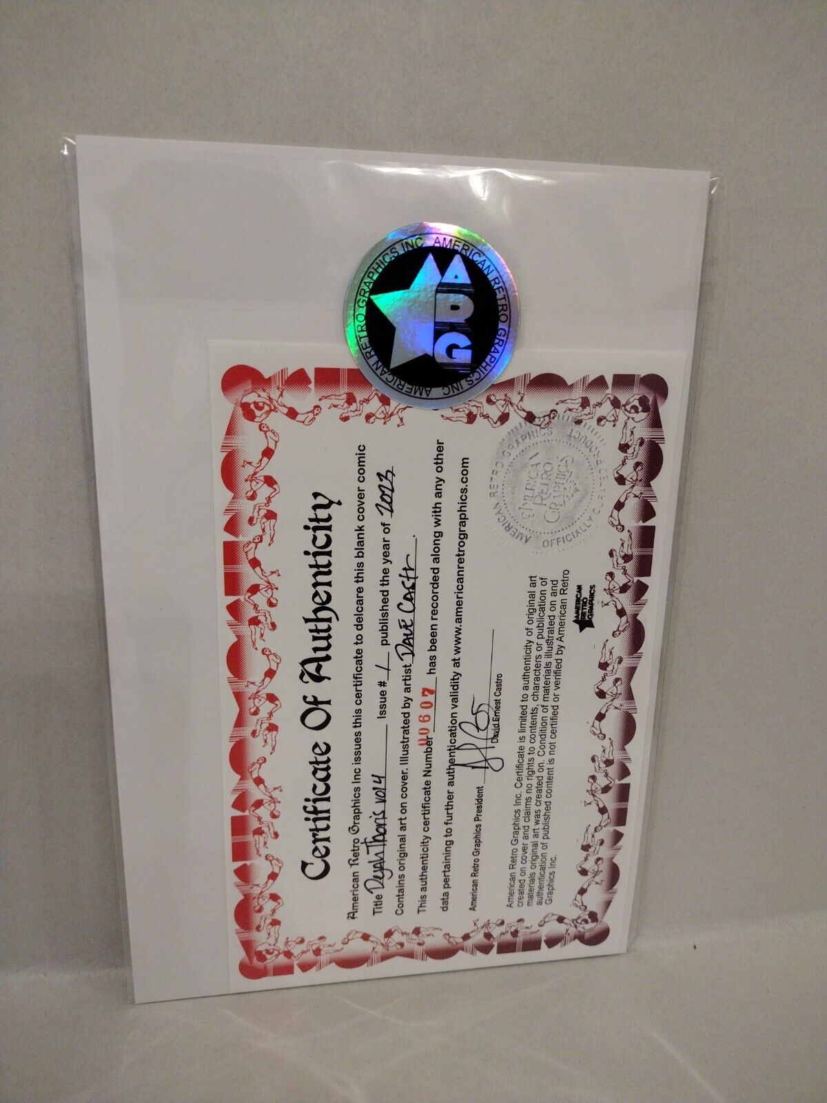 Comic will ship bagged and boarded sealed with ARG logo sticker. Includes certificate of authenticity: Cover and Certificate have been registered in the ARG Database publicly provided on American Retro Graphics website with Identification number 00607.
