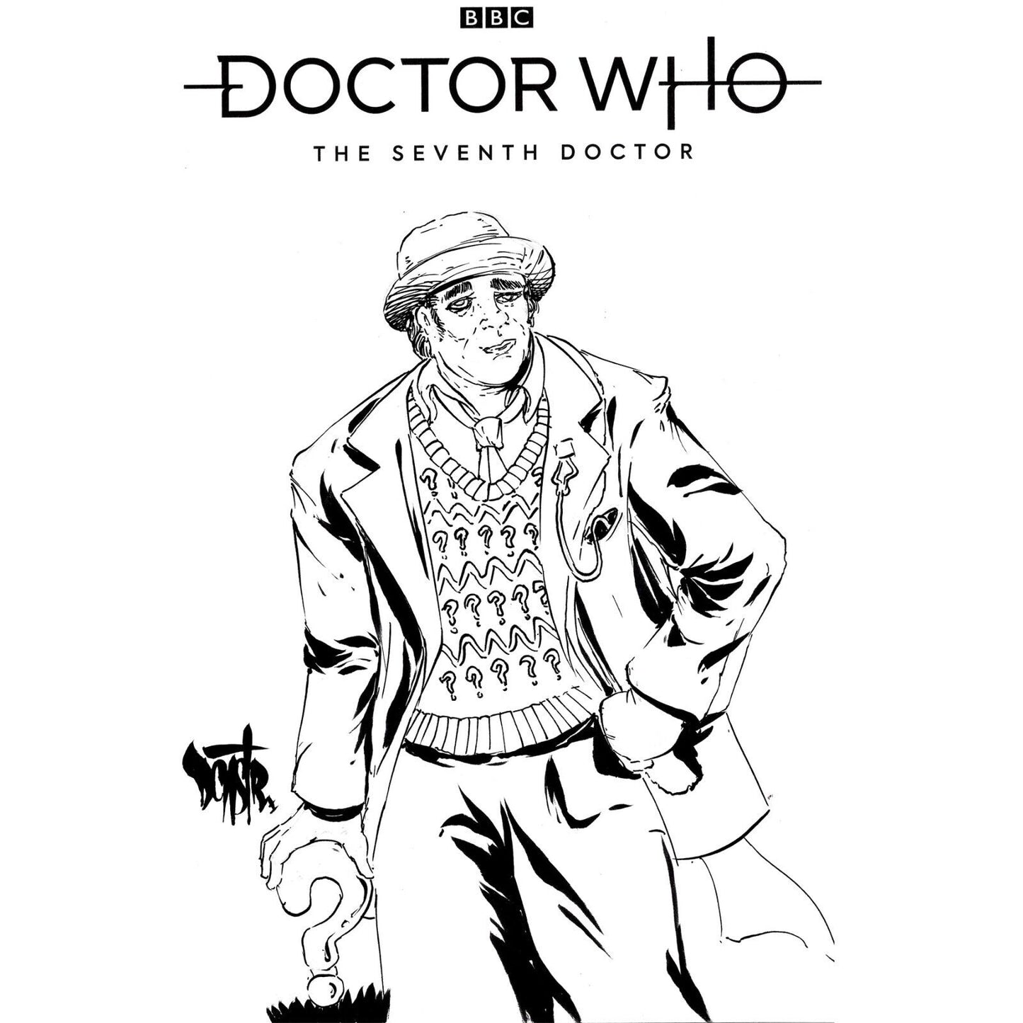 Original art of SEVENTH DOCTOR on front cover signed by artist Dave Castr (DCastr)