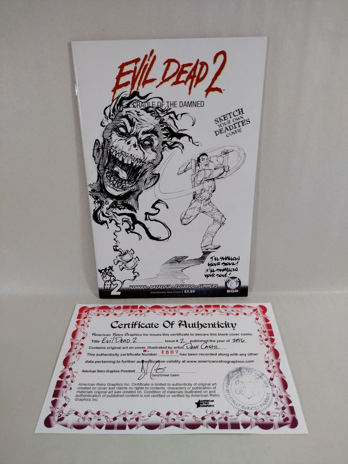 Original Deadite illustration on front cover signed by artist Dave Castr (DCastr). Ash pre-printed on cover.