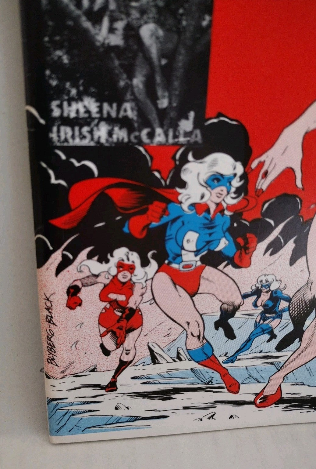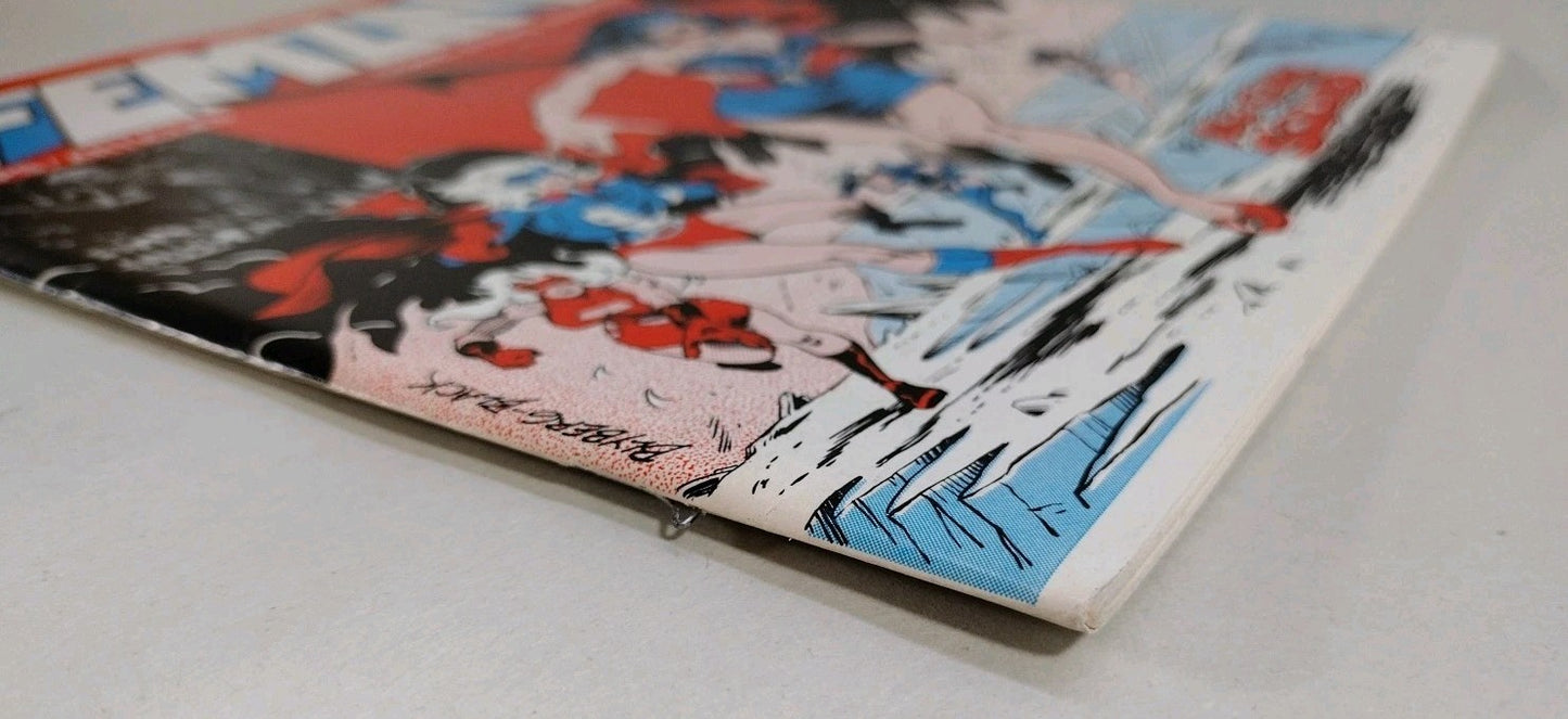 This key issue features the first team appearance of Fem Force. A revision of Golden Age All Female Superhero characters. Femzine feature exclusive comic stories as well as an indepth article of Irish McCalla who played Sheena in Films and Televion that aired during the mid to late 1950s. Includes Sheena center fold pin up illustrated by artist Bob McLeod.
