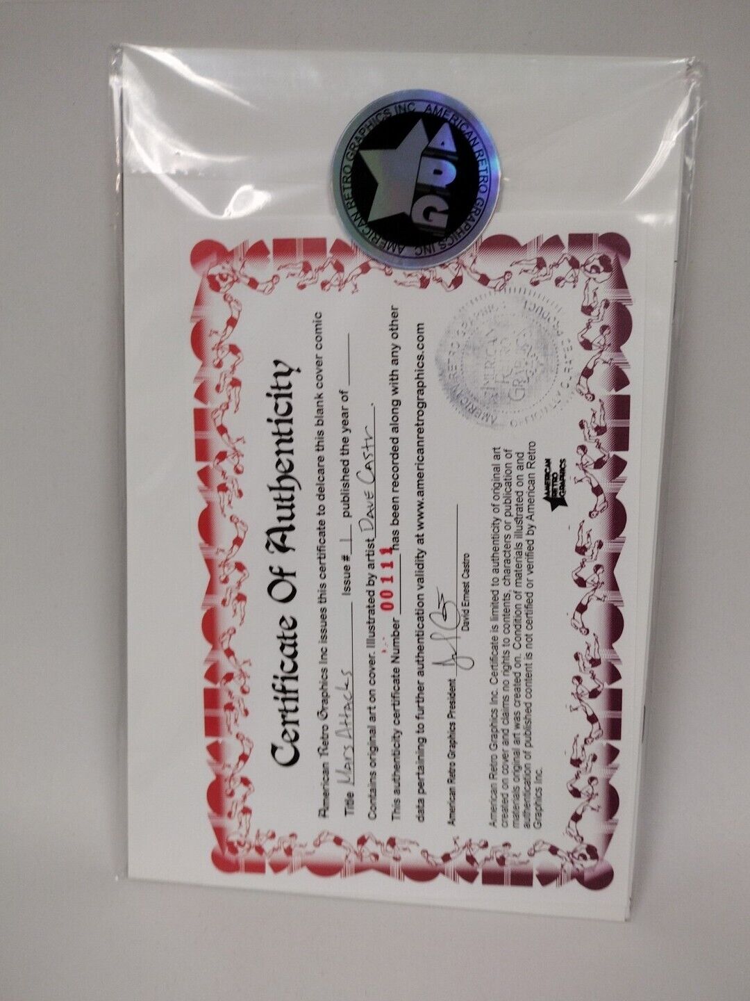 Comic will ship bagged and boarded sealed with ARG logo sticker. Includes certificate of authenticity: Cover and Certificate have been registered in the ARG Database publicly provided on American Retro Graphics website with Identification number 00111.