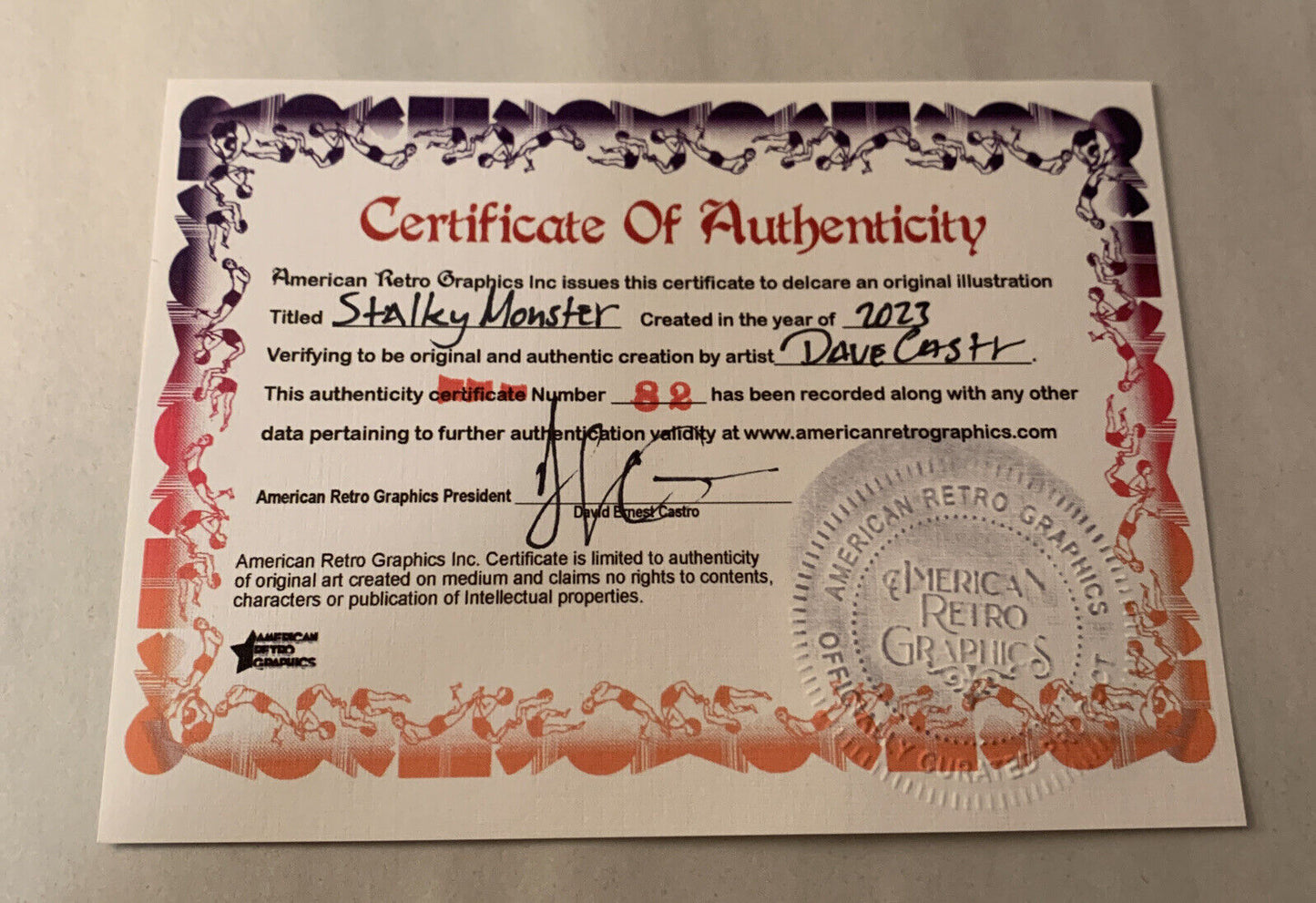 Art is Signed by artist Dave Castr. Each illustration is individually titled and contains American Retro Graphics Certificate of Authenticity. Sealed with Company Holofoil logo.