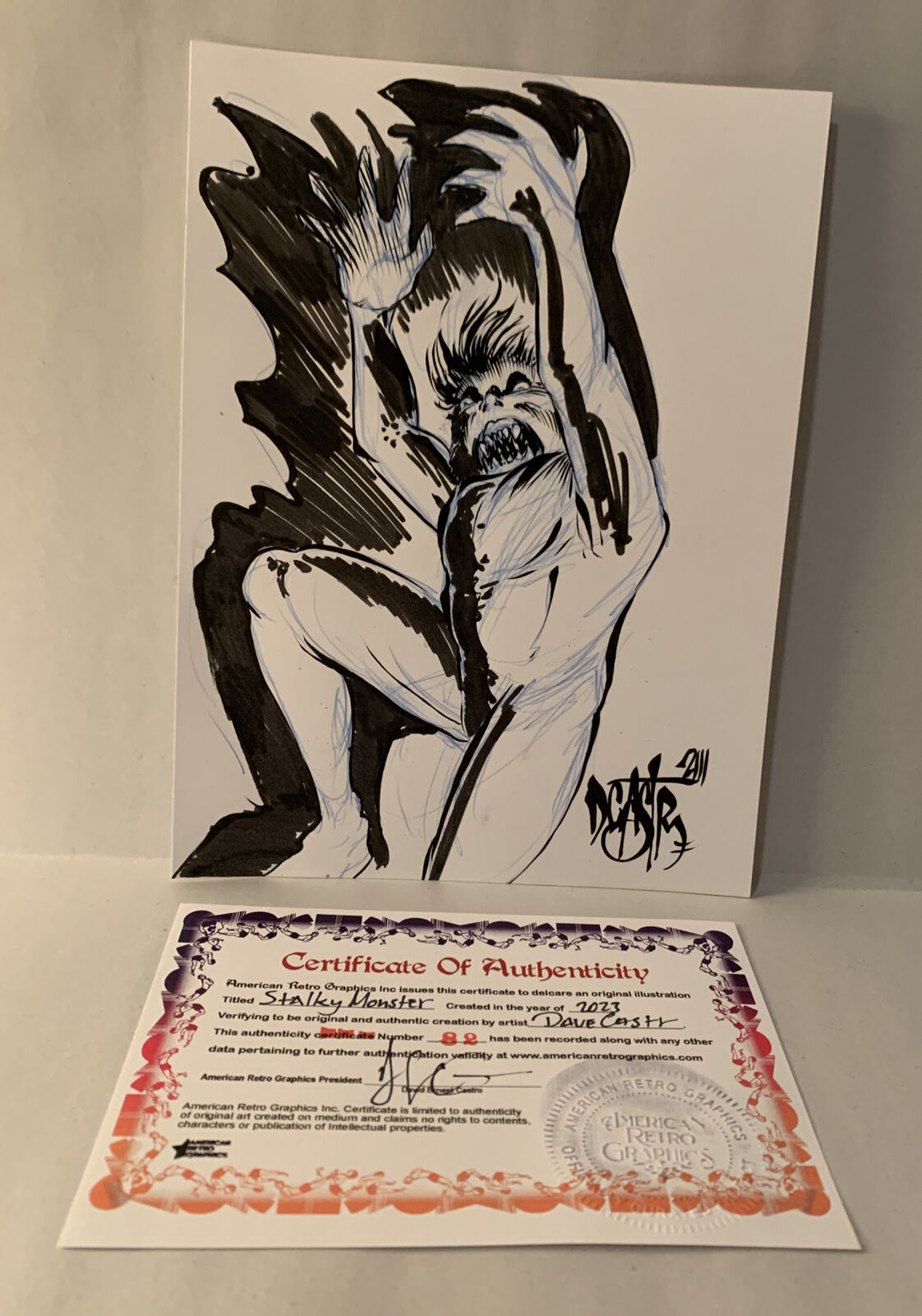 Original Dave Castr Stalky Monster 5x7" Art Sealed W ARG COA