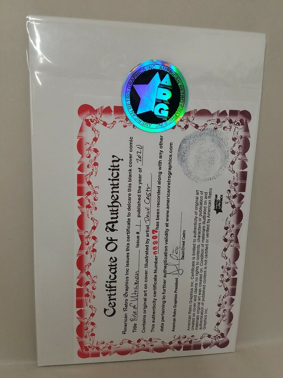 Comic will ship bagged and boarded sealed with ARG logo sticker. Includes certificate of authenticity: Cover and Certificate have been registered in the ARG Database publicly provided on website with Identification number 00207.