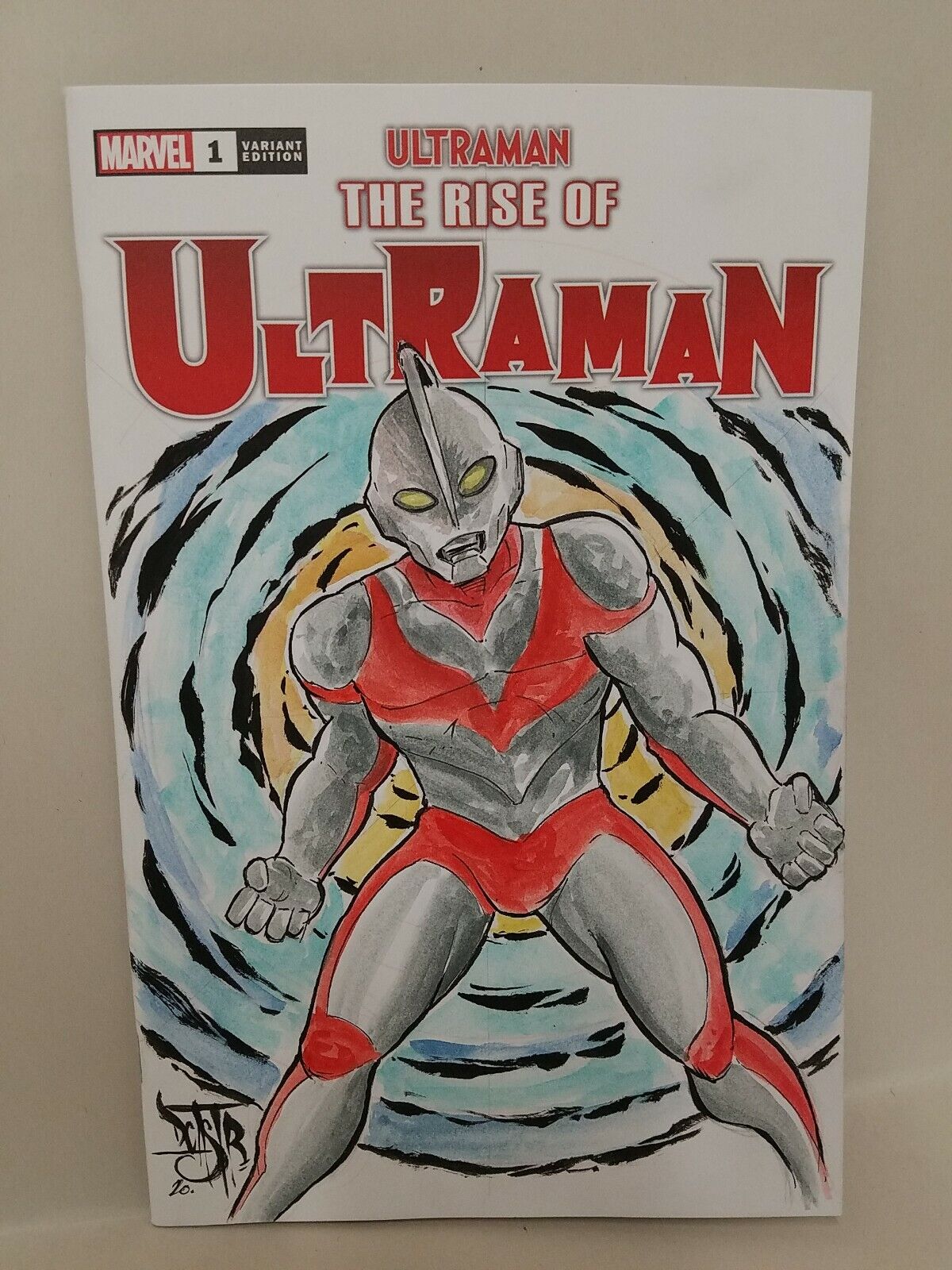 Original watercolor drawing of Ultraman on front cover signed by artist Dave Castr (DCastr)
