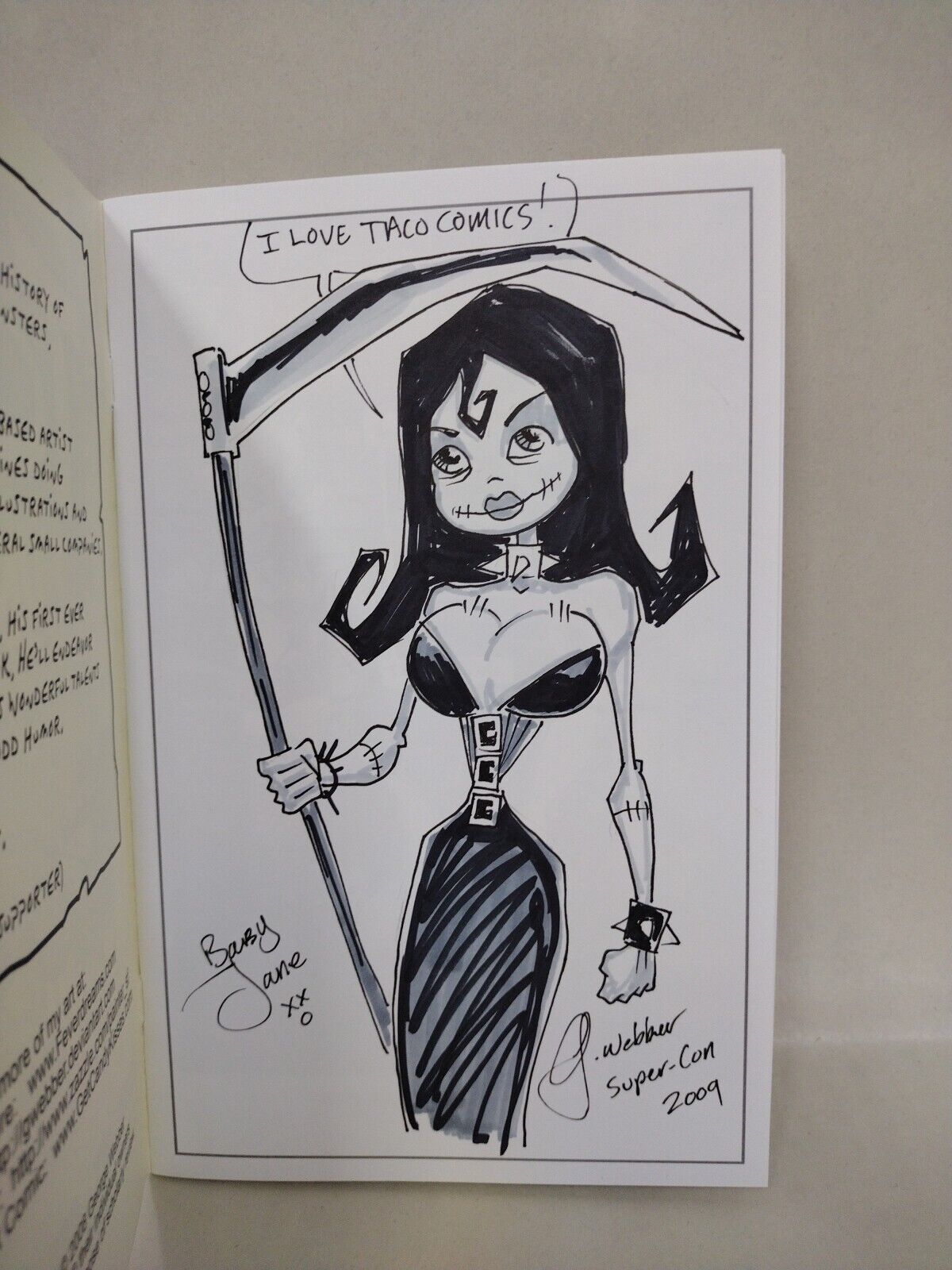 Original sketch on first interior page address to Taco Comics.