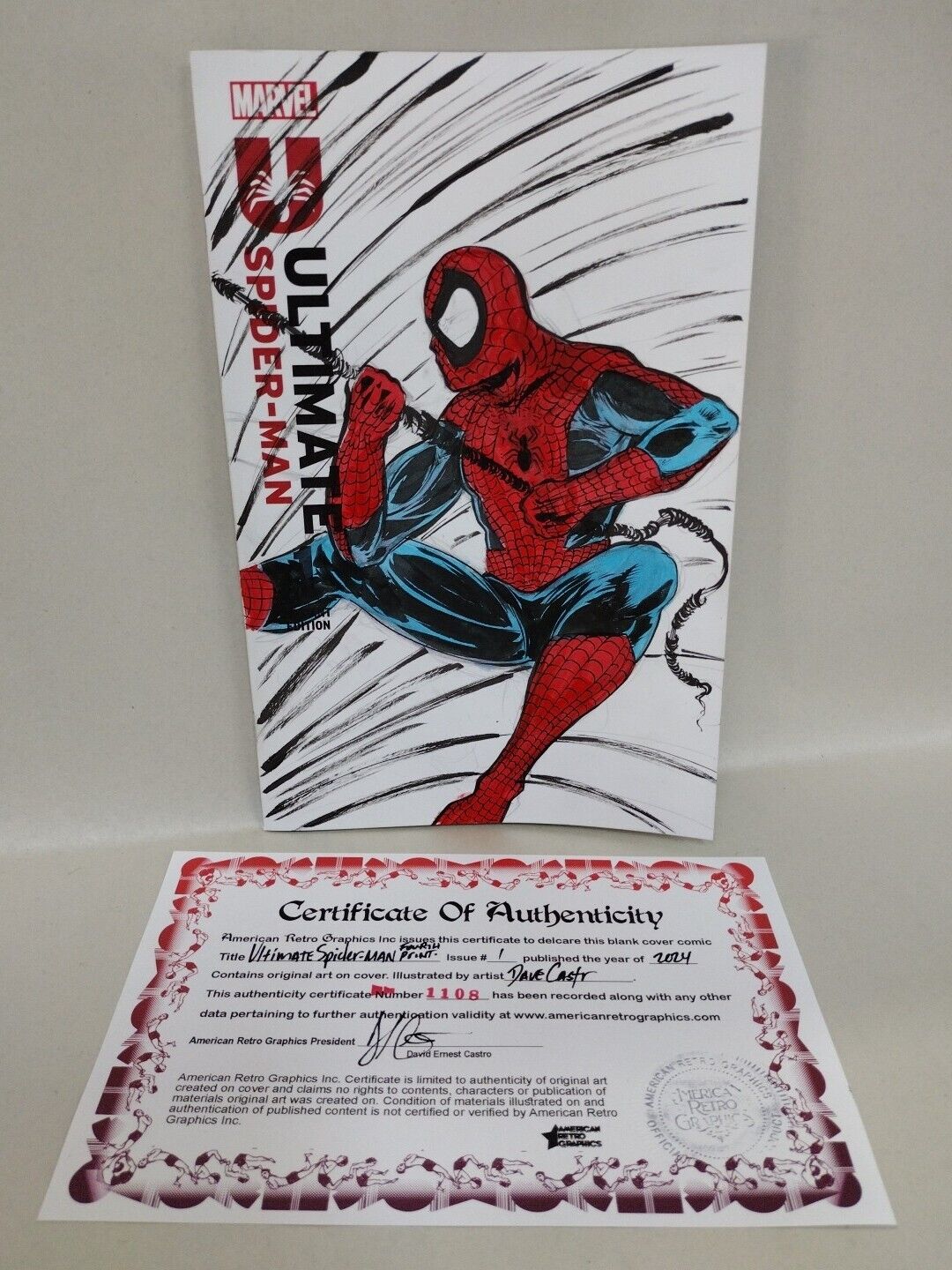 Original art of Spider-Man (Peter Parker) on front cover signed by artist Dave Castr (DCastr)